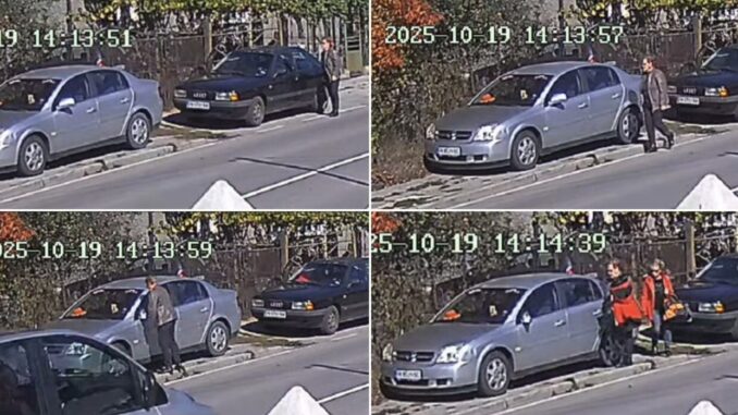 Баба с кожено яке и Ауди чупи колата на съседа си. Видео е публикувано в групите на Перник във фейкбук.