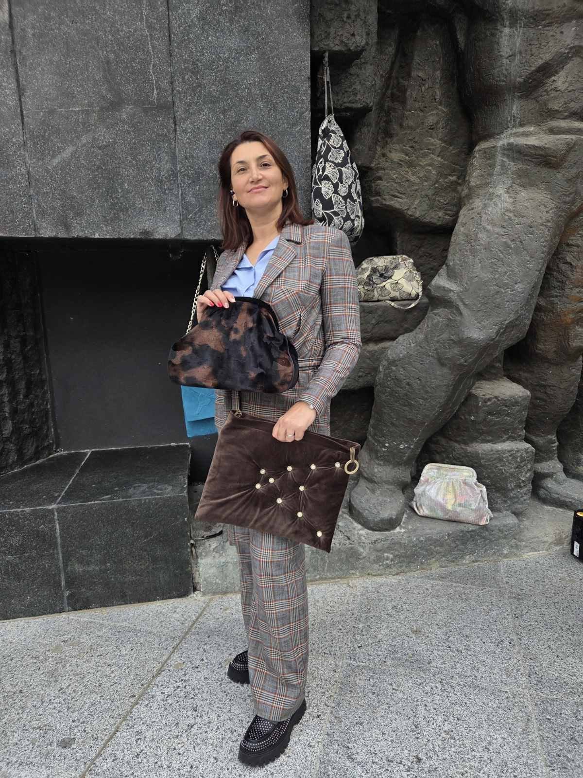 Всяка чанта е направена от остатъци текстил и фабрични изрезки, превърнати чрез изкуство и дизайн в истински моден шедьовър. Онтева показа, че отпадъкът може да се превърне в ресурс, а устойчивата мода може да изглежда луксозно, без компромис със стила.