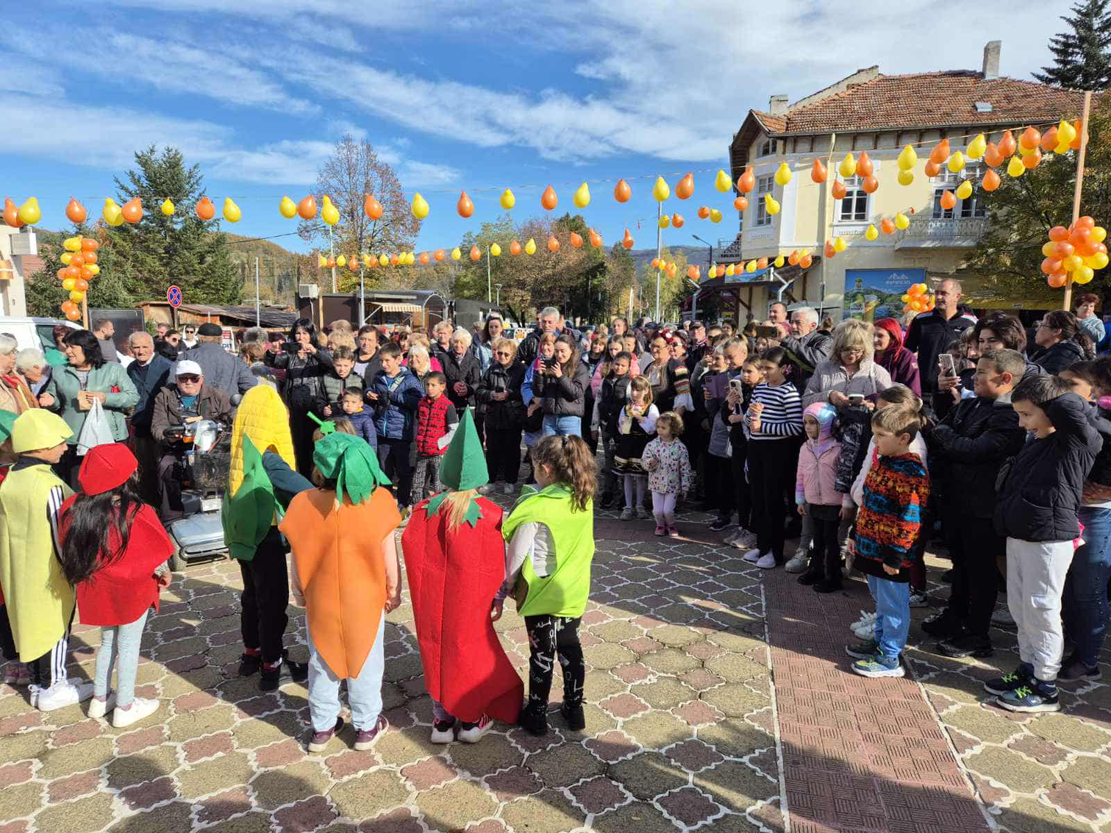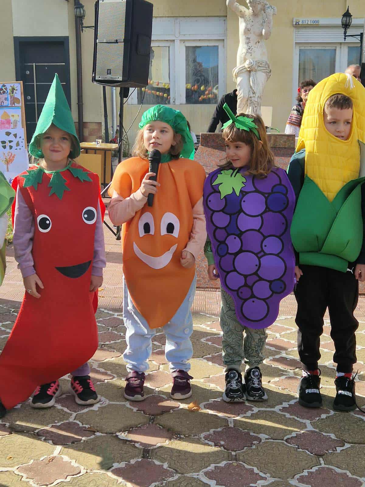 Децата от ДГ „Детелина“ отново бяха звездите на празника! Облечени в новите си костюми на плодове и зеленчуци (закупени с миналогодишните дарителски средства), те представиха своя „Есенен празник“ и усмихнаха публиката с песни и танци.