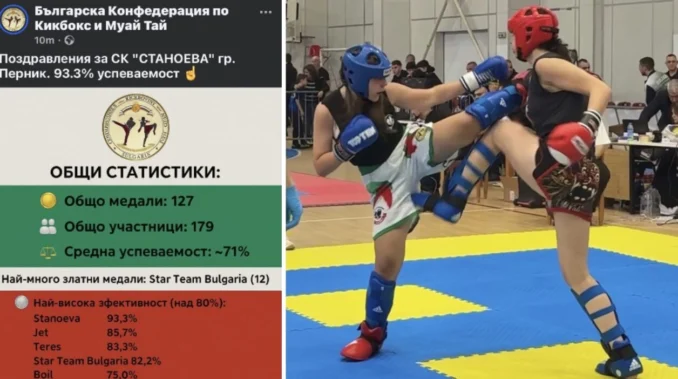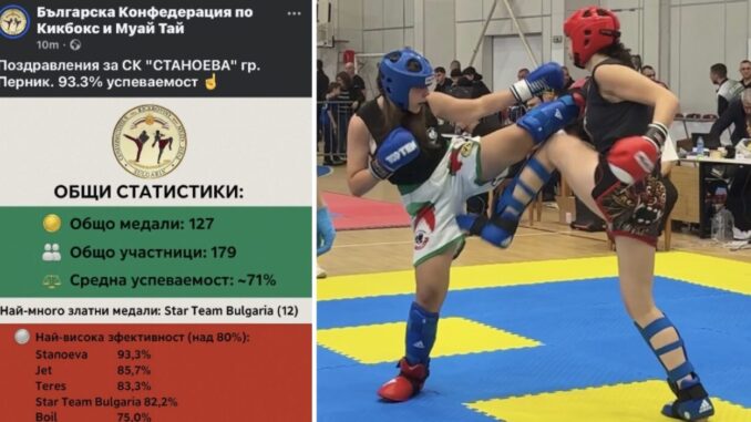 СК “СТАНОЕВА” има 93,3 % УСПЕВАЕМОСТ на Държавното Първенство по кикбокс в стил кик лайт.