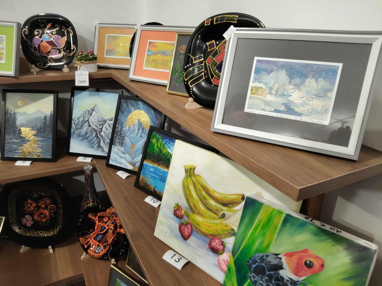 Изложбата на младата художничка се казва „Миш-маш“ – защото съдържа всичко: шпакловка, бои, предмети от бита, графични материали, пастели, въглен, химикалка. Над 40 творби, всяка в различно настроение и произведения от дърворезба.