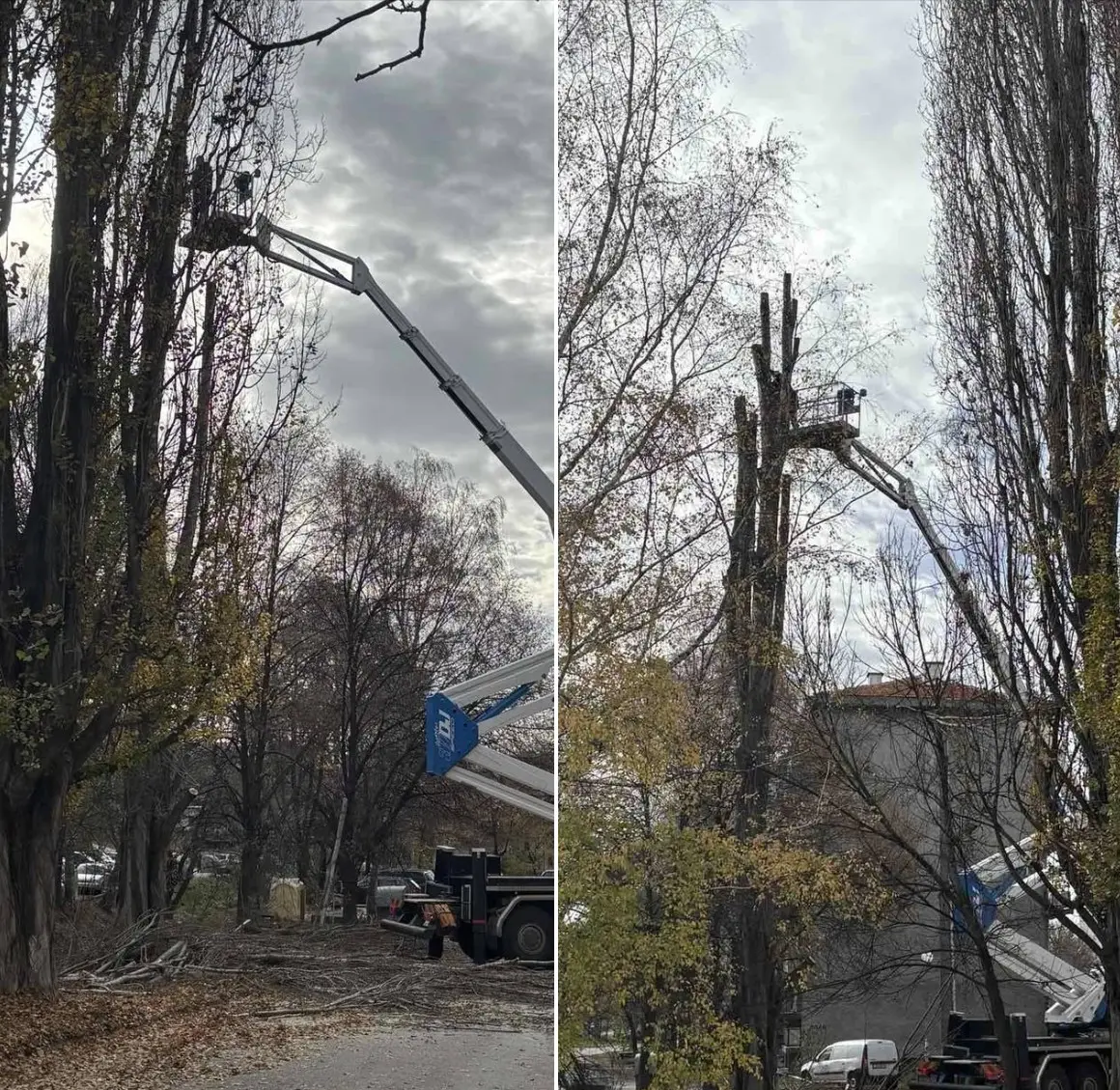 Община Радомир започна поетапно премахване на пирамидални тополи, засадени преди повече от три десетилетия по протежението на канала на ул. „Люлякова“. С напредването на възрастта този вид дървета губи устойчивост и при неблагоприятни метеорологични условия съществува реална опасност от падане на клони, което може да доведе до щети по инфраструктурата и риск за гражданите.