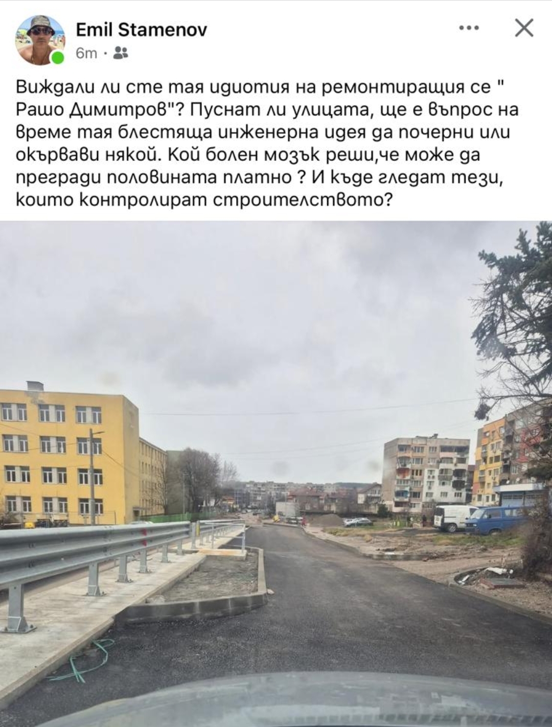 Перничанин е качил снимка на ремонтиращата се улица Рашо Димитров в кв. Изток ,където в нищото на пътя се появява праг с бордюр.