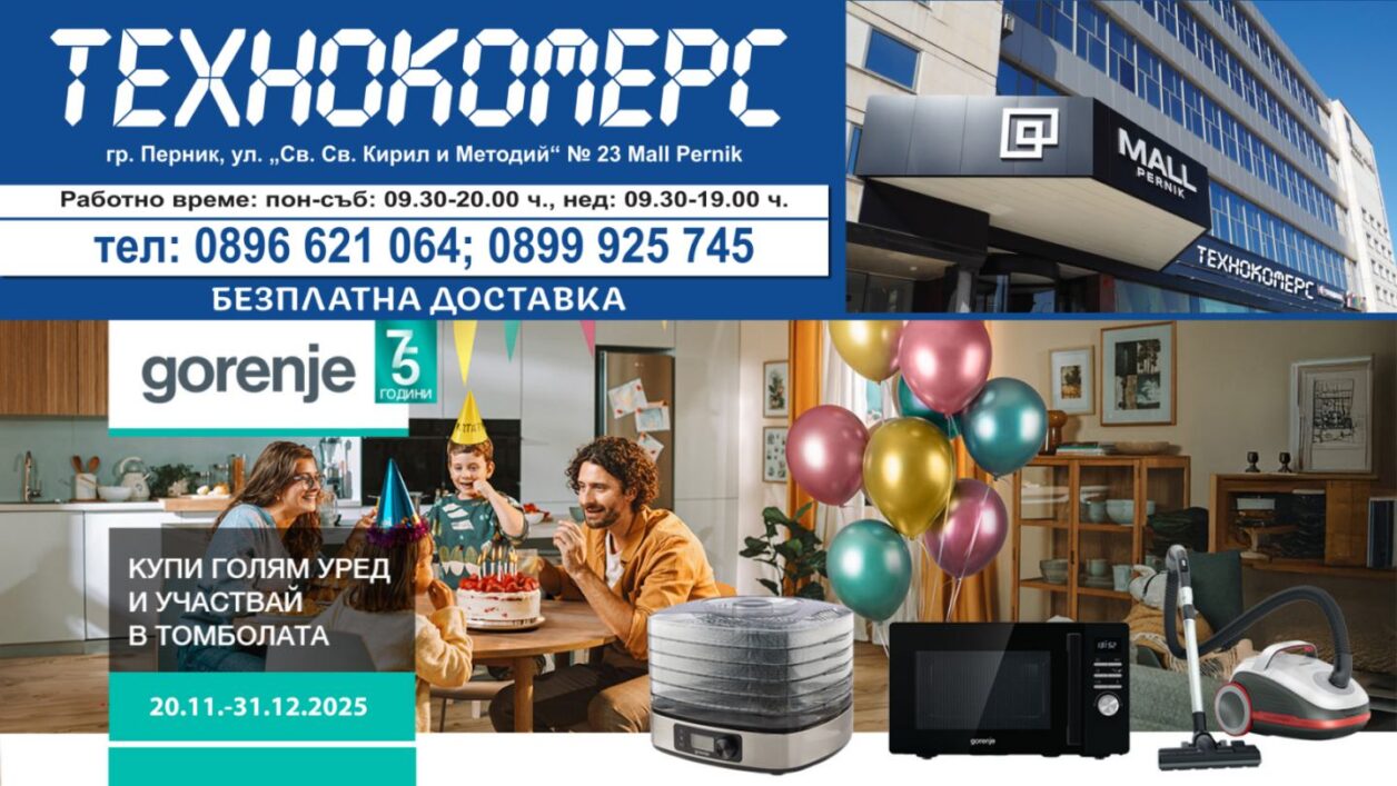 От 20.11 до 31.12. 2025 г. при покупка на голям уред марка „Горение“ от магазин „Технокомерс“, получавате стреч карта с допълнителен подарък. Всяка карта печели! Така, че няма да си тръгнете с празни ръце, гарантират от пернишката фирма за битова техника.