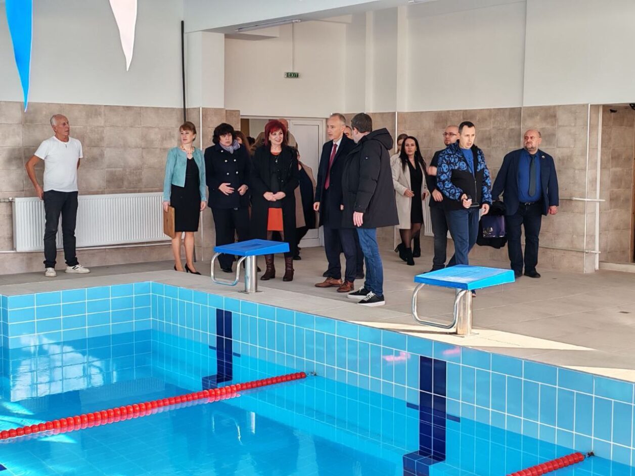 В програмата бе включено и това министър Вълчев да види новоизградените спортни площадки и новия басейн към 10-то училище.