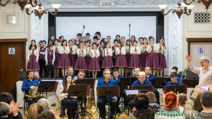 Коледна еуфория заля Двореца на културата, след като Духовият оркестър с диригент Трифон Трифонов и детски хор „Таласъмче“ превърнаха сцената в истинска празнична приказка.