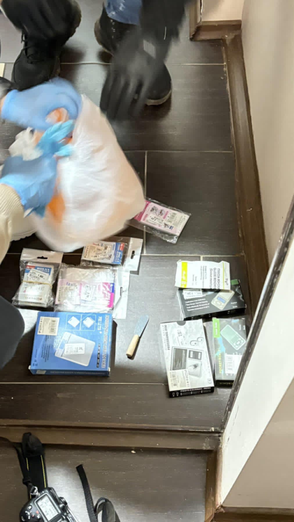 От дома на 42-годишния са иззети около 5 000 лева в различна валута, четири електронни везни, мобилни телефони и множество пособия, използвани при разпространение на наркотични вещества.