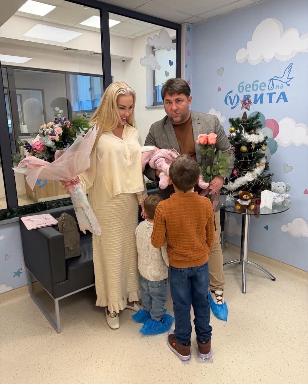 Антония Петрова от Перник роди третото си дете. Безкрайно щастлива тя публикува снимка от изписването си от болницата, заедно с цялото си вече петчленно семейство.