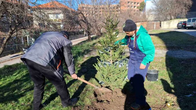 Коледното дърво е върнато и отново засадено от служители на ОП „Благоустройство и озеленяване“.