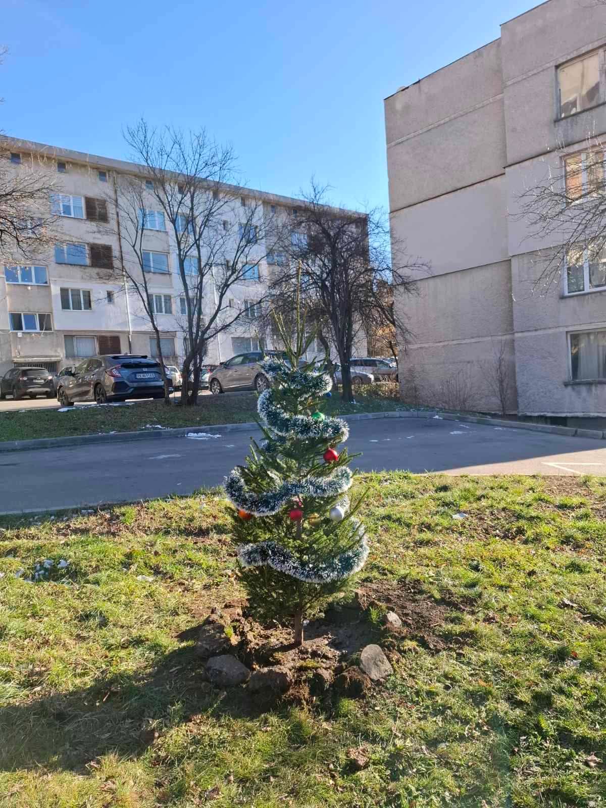 Припомняме, че елхата беше открадната от района на военните блокове, срещу училище „Христо Смирненски“, на ул. „Райко Даскалов“, където беше украсена с много старание и обич от децата от квартала.