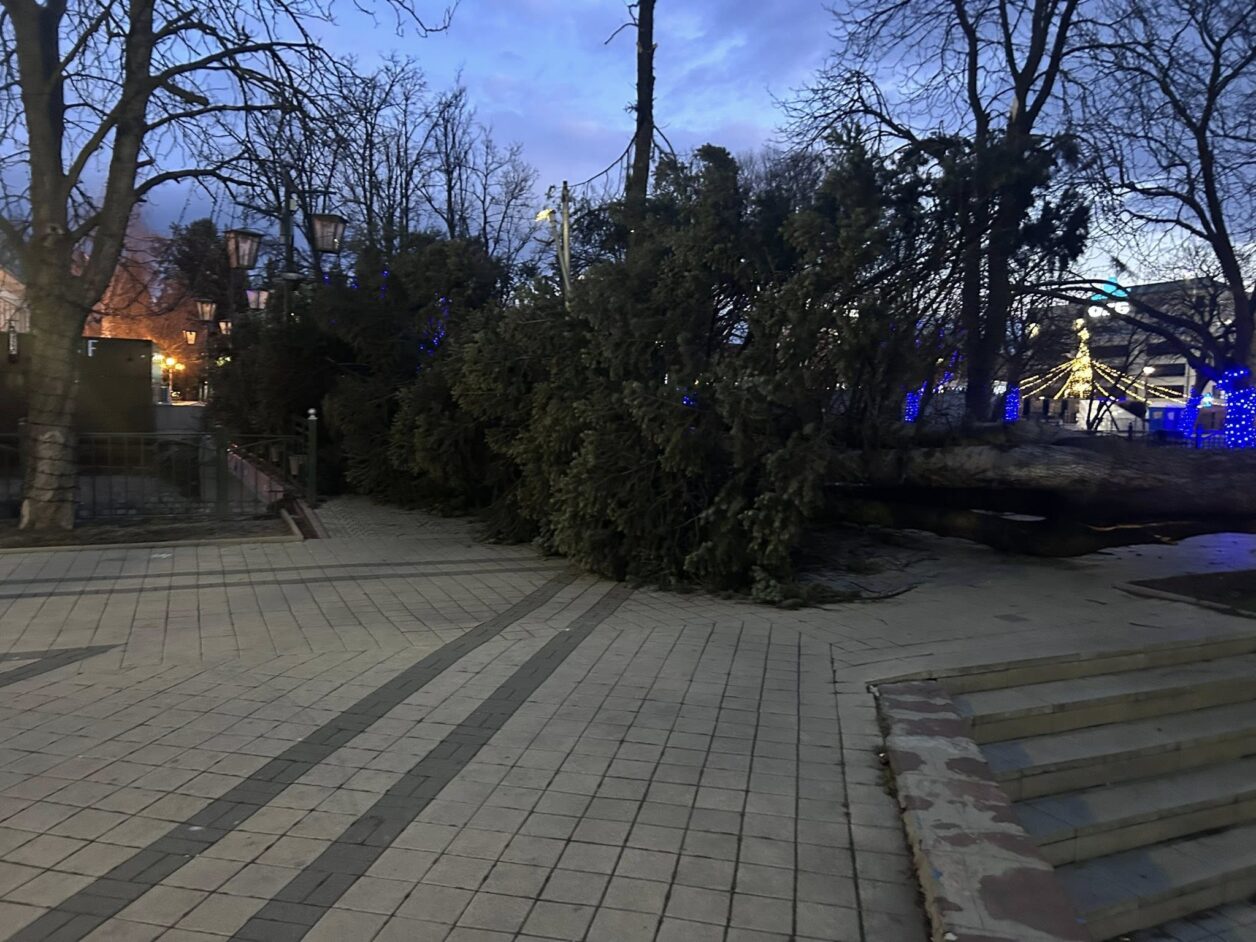 Дървото се е намирало до сградата на Младежкия дом и се е пречупило в основата при корена. С цялата си тежест дървото е паднало на моста, където преминават пешеходци. За щастие към този момент не е имало хора наоколо и никой не е пострадал.