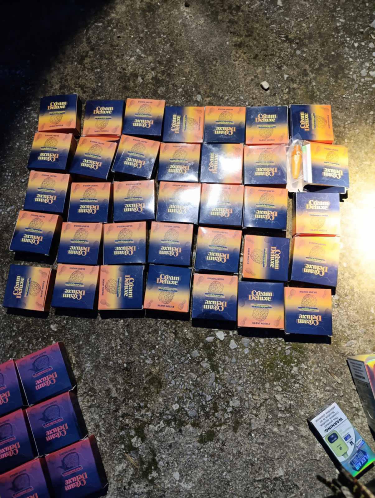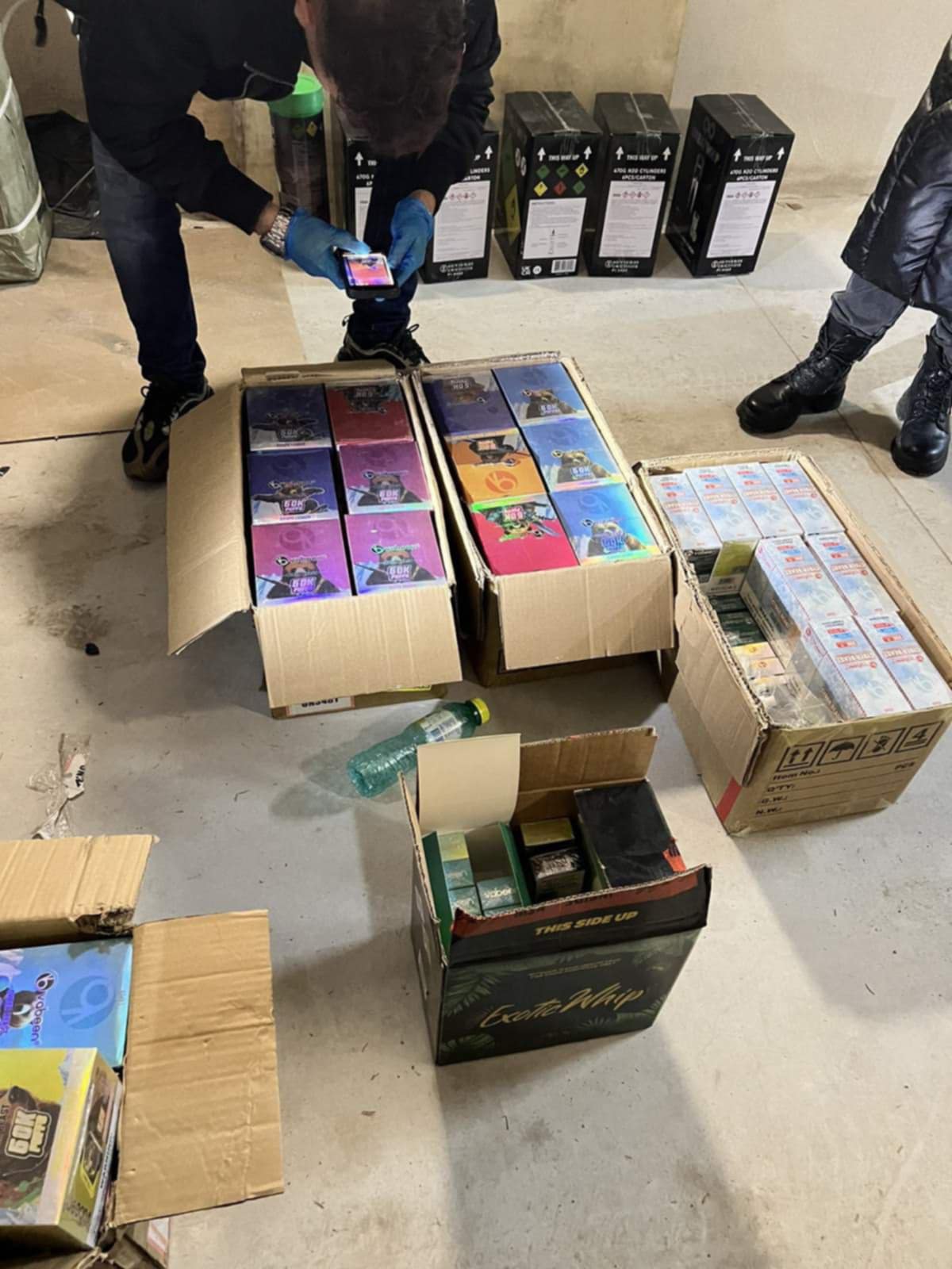 В последствие били предприети процесуално-следствени действия, при които били извършени претърсвания и изземвания в жилище в гр. Перник и гараж на територията на гр. София, ползвани от лицето. В хода на извършените действия са установени и иззети 504 броя електронни димни устройства без акцизен бандерол, 31 броя флакони с диазотен оксид (райски газ), 164 броя кутии с приспособления за употреба на диазотен оксид, 17 броя неистински банкноти с номинал 50 лева, както и около 8 килограма нарязан тютюн без акцизен бандерол.
