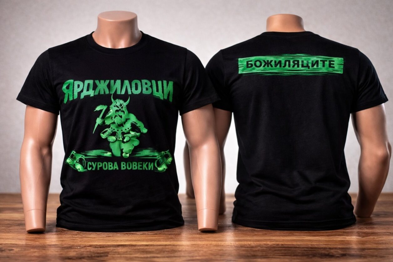 Село Ярджиловци изглежда иска да подчертае, че е непобедимата крепост на сурвакарската традиция, правейки нещо нежидано – фен тениски!