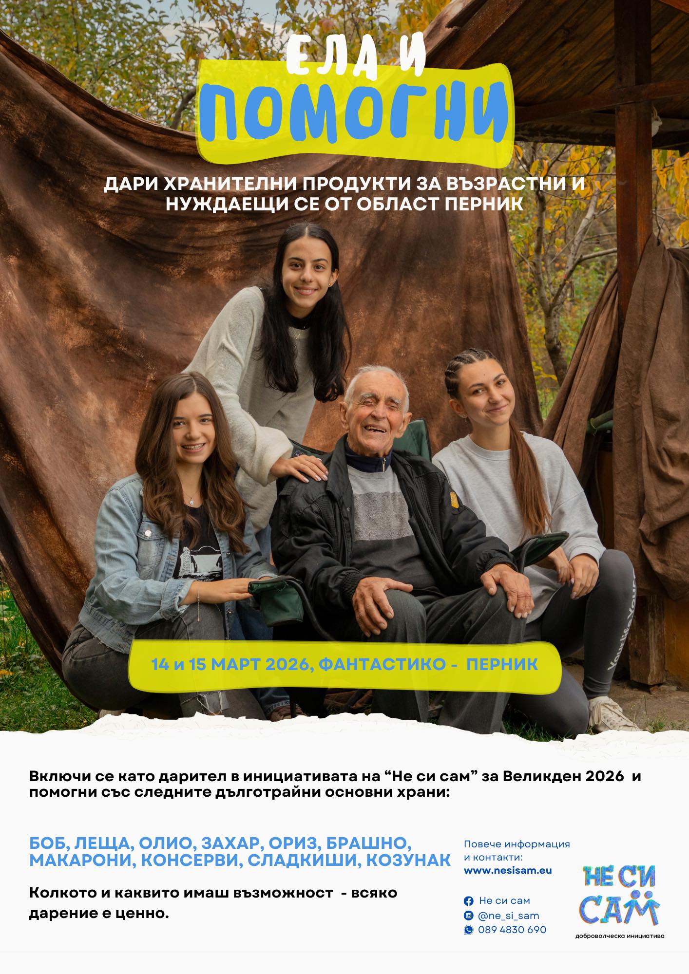 Фондация „Не си сам“ започва пролетна кампания за събиране и раздаване на хранителни продукти в подкрепа на възрастни хора и нуждаещи се жители на малките населени места в област Перник.