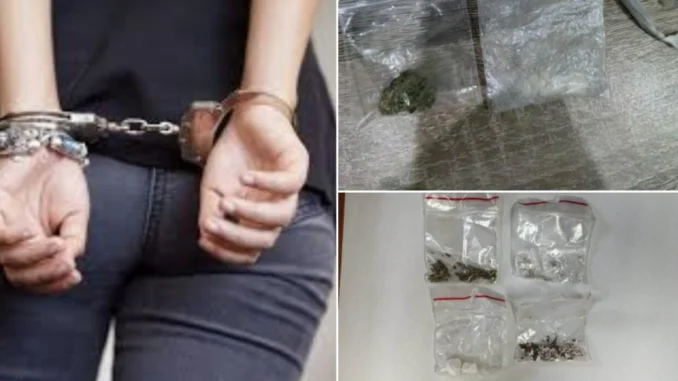 При извършения личен обиск от нея са иззети пликчета, съдържащи бяло прахообразно вещество с тегло над 2 грама, и две пликчета със суха зелена листна маса, реагирали съответно на амфетамин и канабис.