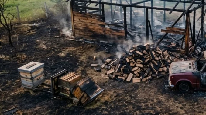 Лек автомобил, дървен материал и кошери са унищожени при пожар в брезнишкото село Режанци.