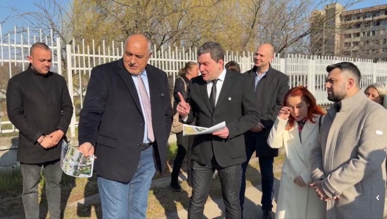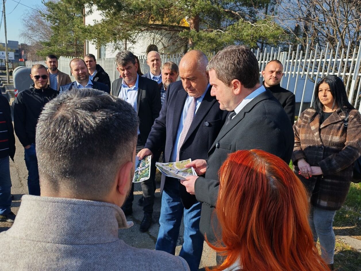 Борисов бе посрещнат от актива на ГЕРБ – кметове , кандидат депутати , председател на Общинския съвет и кмета Станислав Владимиров в кв. Мошино, до църквата.