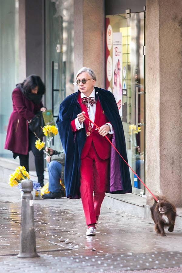 В групата People of Sofia бе публикувана снимка на Денди отпреди 10 години, на която той разхожда своето кученце, преоблечен в червен костюм и палто.
