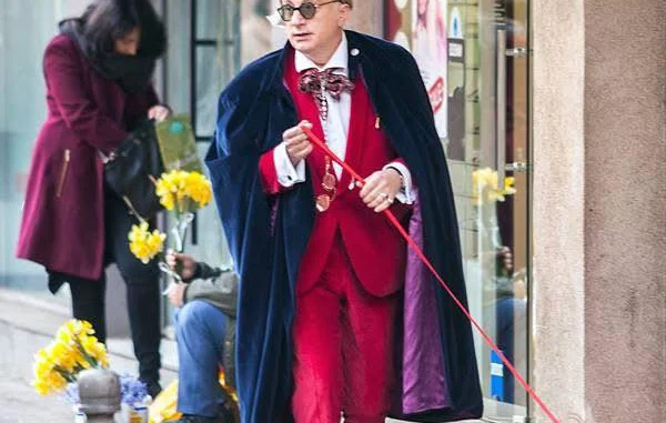 В групата People of Sofia бе публикувана снимка на Денди отпреди 10 години, на която той разхожда своето кученце, преоблечен в червен костюм и палто.