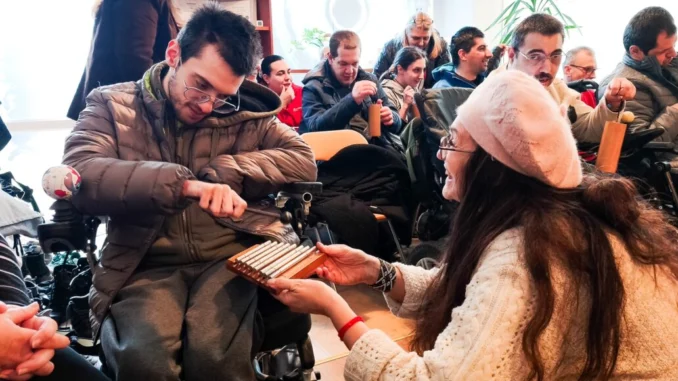 На 30 март в Градската художествена галерия в Благоевград участниците в проекта проведоха открита демонстрация на звуковата терапия. Практическият уоркшоп показа интерактивни методи и позволи на младежи с аутизъм и различни специални потребности да се докоснат до музикални инструменти и да изпитат благотворното влияние на звука, музиката и движението. Усвоените техники за работа със звука бяха приети с радост от младежите със СОП и служителите от дневни центрове, които ги съпровождаха. Те споделиха, че звукотерапията наистина осигурява емоционална и психологическа подкрепа за по-активно социално включване и себеизразяване на децата и младежите с интелектуални затруднения.