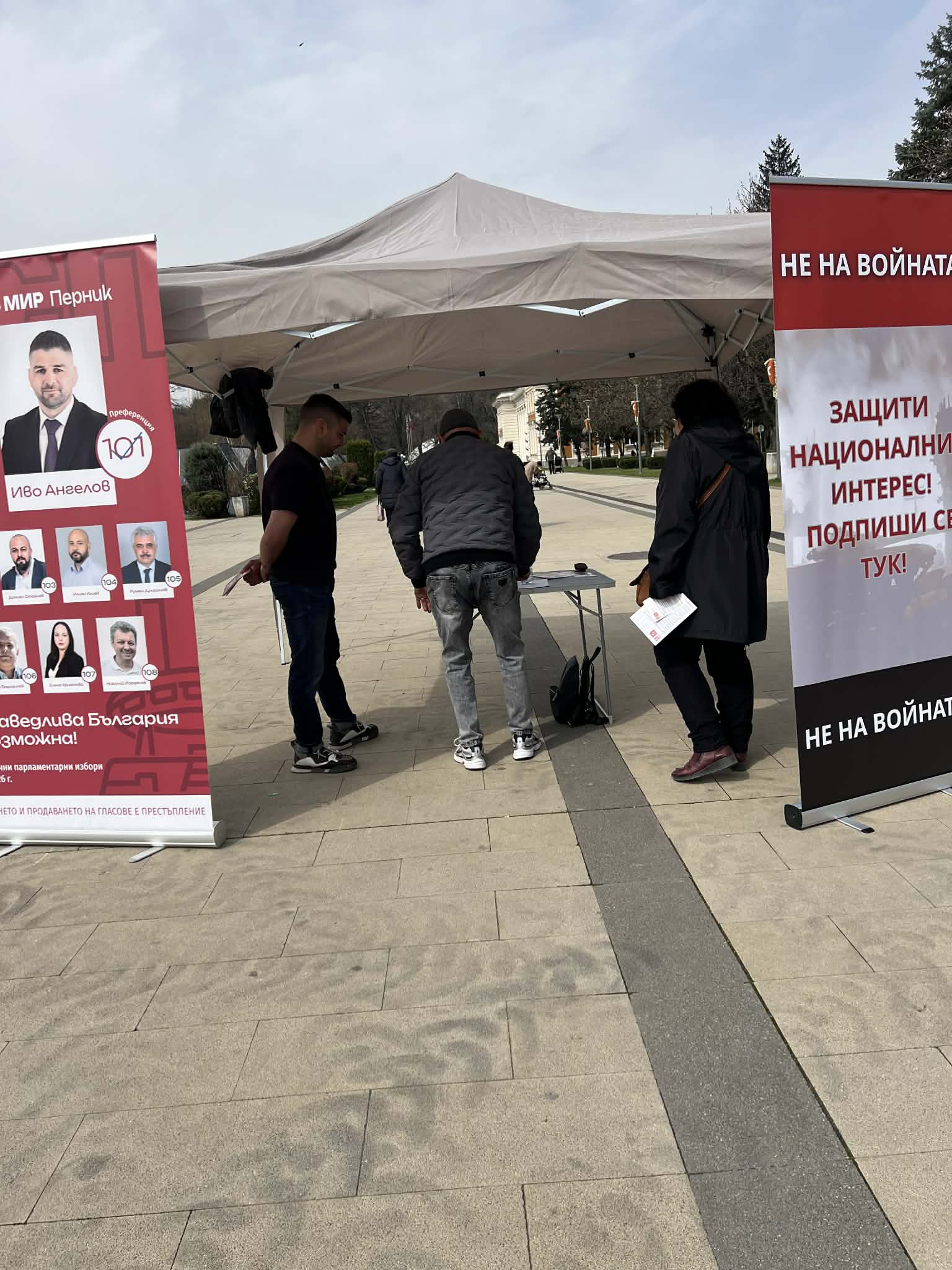 Водачът на листата от гр. Перник Иво Ангелов бе от първите, които подкрепиха подписката. „Силната държава пази хората си, а не ги въвлича в конфликти. В предизборната ни кампания бяхме във всяка община в Пернишка област. Хората единодушно ни поздравиха за инициативата и я подкрепиха. Без мир, няма сигурност“, каза още той.