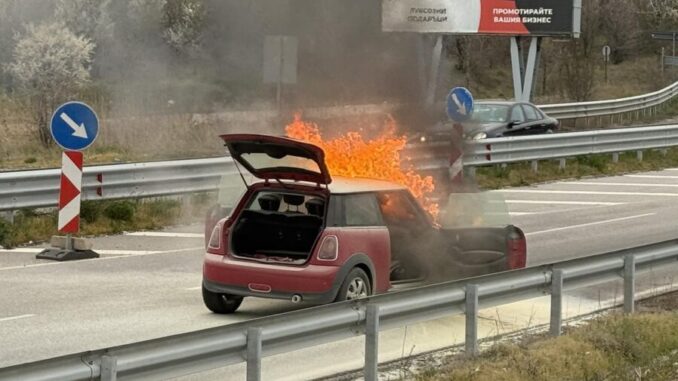 Инцидентът е от тази сутрин по пътя Перник – София. Зад волана на колата е жена. Очевидци разказват, че колата е започнала да дими под капака, първоначално са помислили, че е прегряла, но след това пламъците лумнали. Хора се се притекли на помощ да касят колата, но неуспашно.