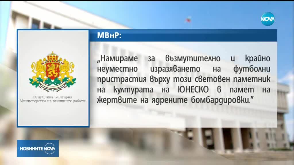 От българското външно министерство определиха случилото се като „възмутително“. А изразяването на футболни пристрастия върху световен паметник за жертвите на ядрените бомбардировки било „крайно неуместно“. Дипломатите ни поднасят извинения на Япония, съобщиха по Нова ТВ.