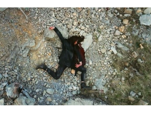 За направата на сцената актрисата скача от 4 метра върху специален дюшек, разположен върху скали. Затова разказаха самата тя и екранната й половинка Иво Фотев, в чийто образ се превъплъщава Васил Бинев в предаването „Събуди се“ по НТВ.