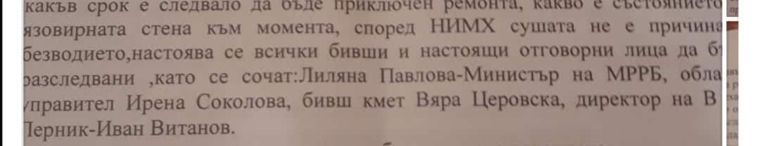 Това пише в постановление на Районна прокуратура Перник, касаещо водния режим в града. „Респективно преписката съдържа данни за евентуално осъществен състав на престъпление по чл. 219 от НК“, добавя прокурор Красимира Минчева.